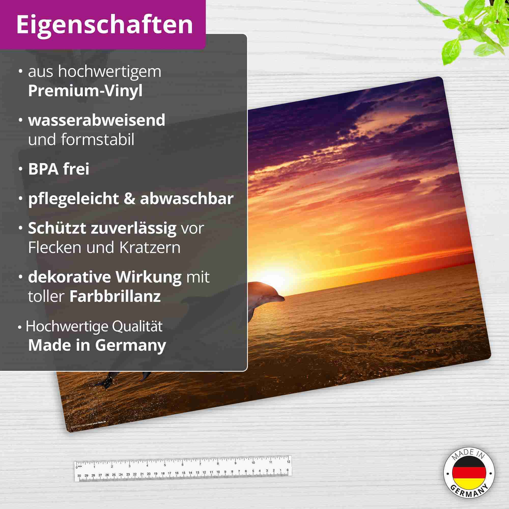 Cover-your-desk Schreibtischunterlage für Kinder und Erwachsene Delfine im Sonnenuntergang, aus hochwertigem Vinyl , 60 x 40 cm