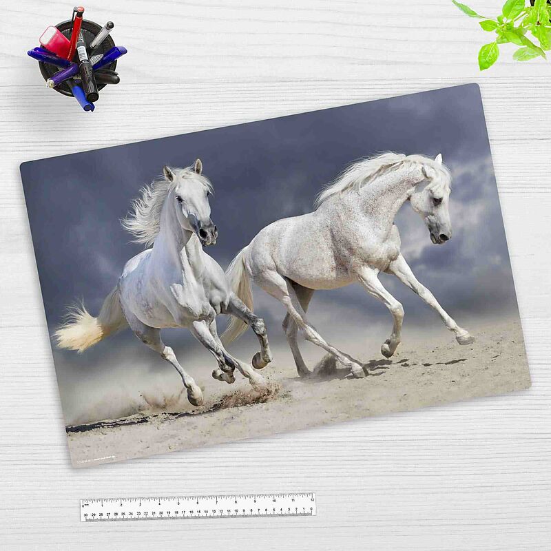 Cover-your-desk Schreibtischunterlage für Kinder und Erwachsene Galoppierende Pferde - weiße Schimmel, aus hochwertigem Vinyl , 60 x 40 cm