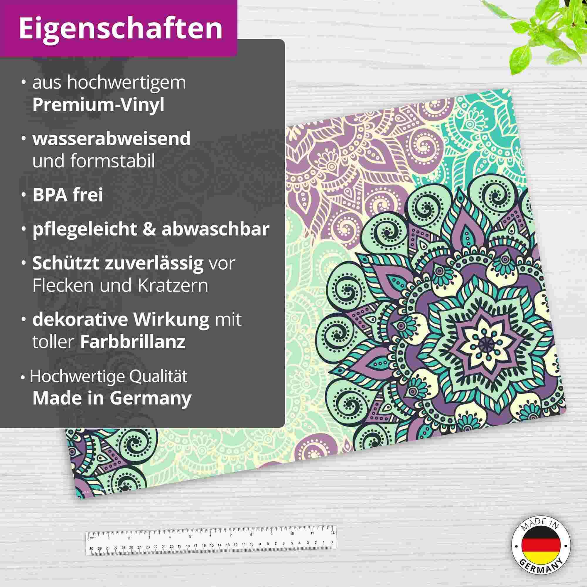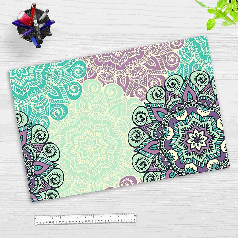 Cover-your-desk Schreibtischunterlage für Kinder und Erwachsene Mandala grün-türkis, aus hochwertigem Vinyl , 60 x 40 cm
