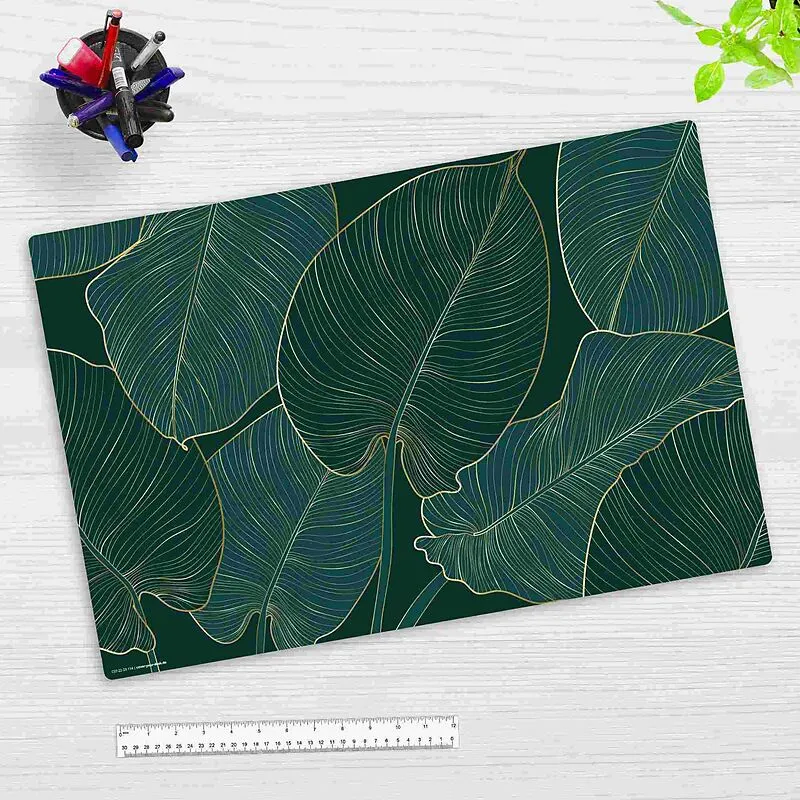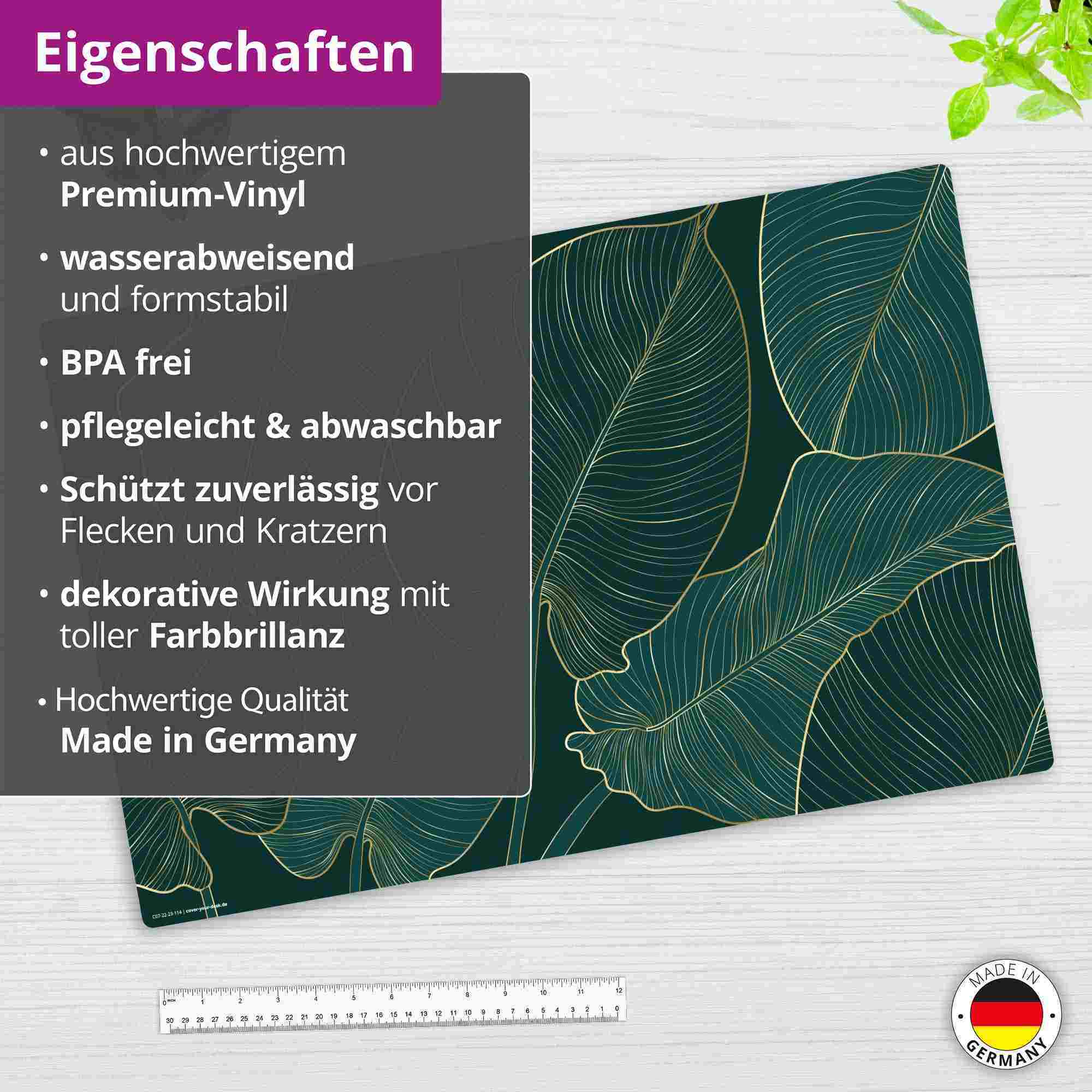 Cover-your-desk Schreibtischunterlage für Kinder und Erwachsene Tropische Blätter mit Goldadern, aus hochwertigem Vinyl , 60 x 40 cm
