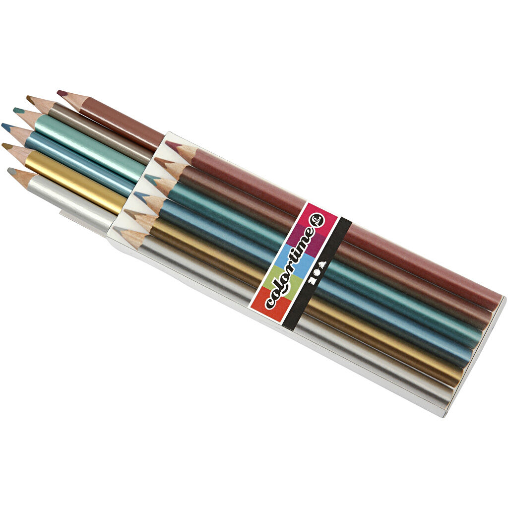Creativ Company Colortime Buntstifte, L 17,45 cm, Mine 3 mm, Metallic-Farben, 6 Stk