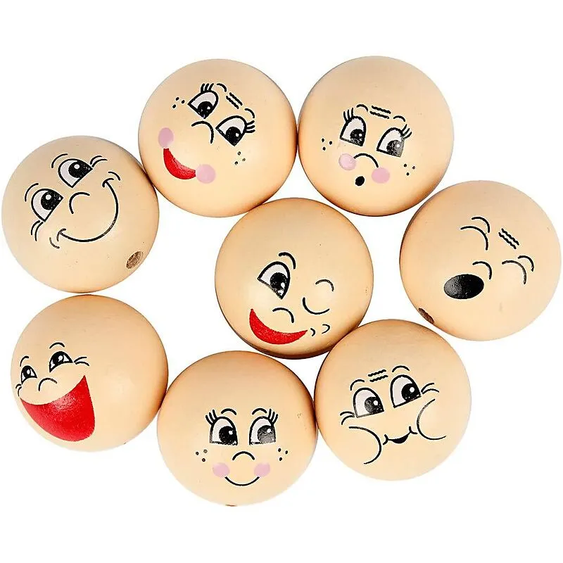 Holzperlen mit halbgebohrtem Loch - hautfarben - mit 8 verschiedenen lustigen Gesichtern zu je 2 Stck