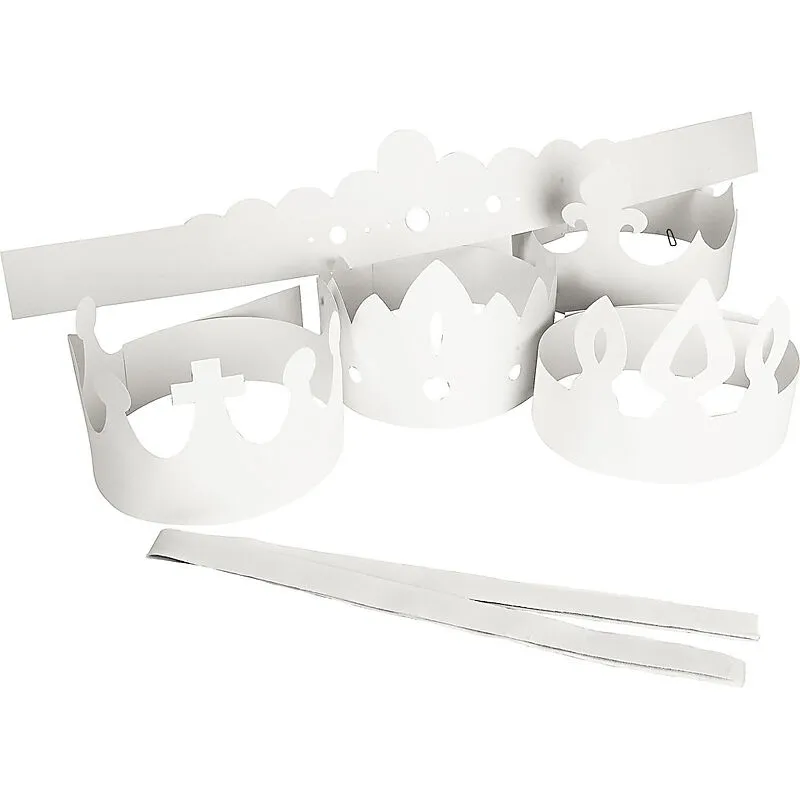 Verschiedene Varianten von Kronen, ausgestanzt aus weißem Karton - inkl. Klettband zur Größenanpassung