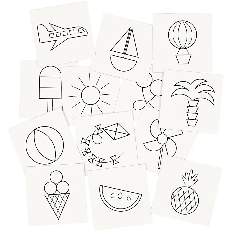 Memory-Karten aus kräftigem Karton mit 2 x 13 verschieden gedruckten Motiven.