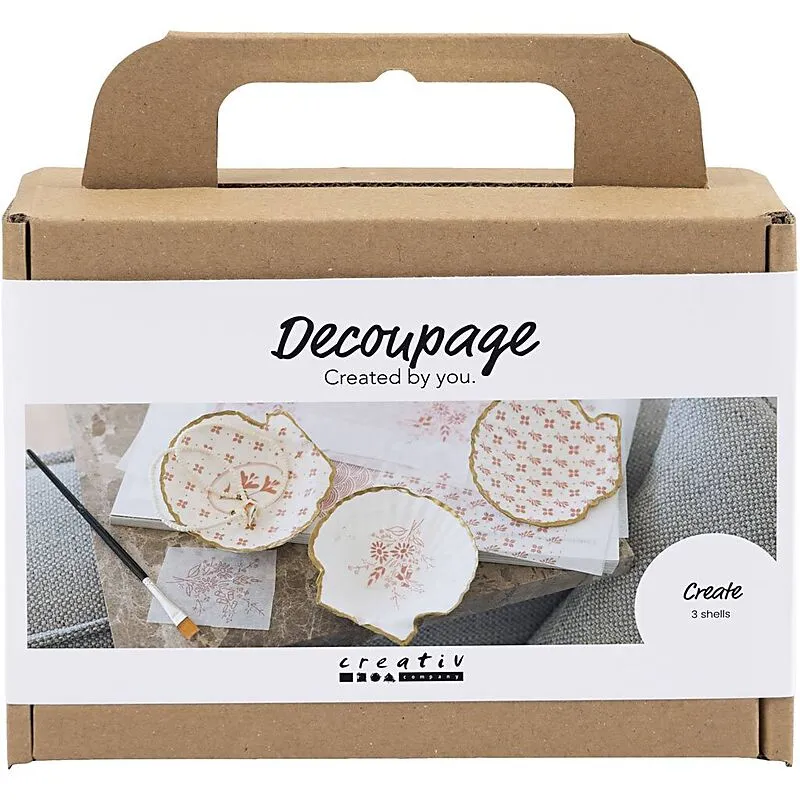 Mit unserer Creativity in a Box können Sie entzückende kleine Muschelschalen mit Dcoupage-Papier basteln perfekt zum Aufbewahren von Kleinigkeiten und Schmuck. Sie enthält Materialien für drei Muscheln und alle benötigten Anleitungen. Möchten Sie die Schönheit...