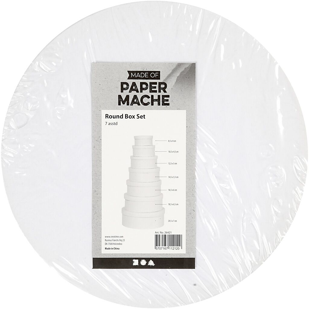 Creativ Company Runde Geschenkkartons H 4+4,5+5+5,5+6+6,5+7cm, D 8,5+10,5+12,5+14,5+16,5+18,5+21,5 cm, Weiß, 7 Stk/ 1 Set