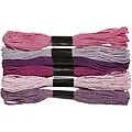Stickgarn in sehr feiner Qualität; 6-fädig, Dicke: 1 mm; 6 Bündel je 8 m; 100 % mercerisierte Baumwolle.