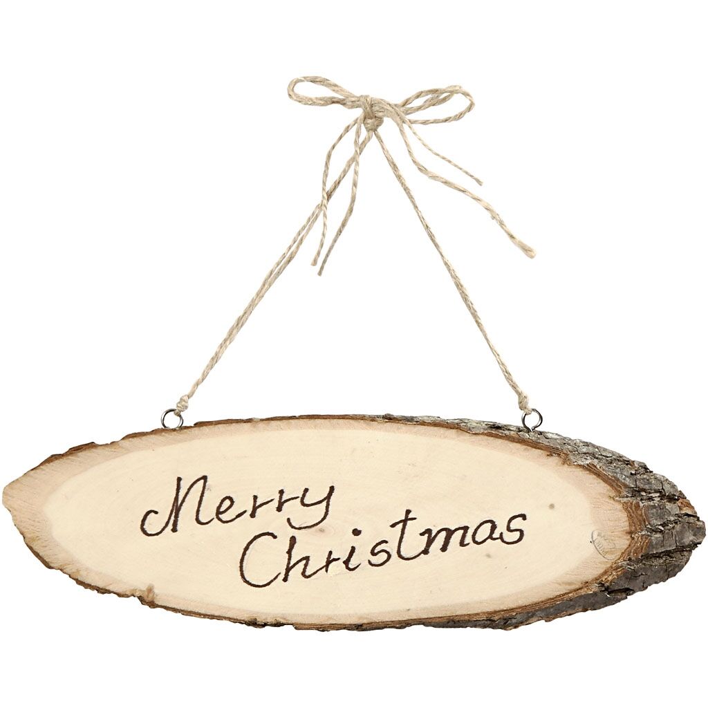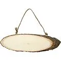 Winklig geschnittenes Holzbrett mit Rindenkante. Hängekordel bereits angebracht. Kleine Verästelungen sowie die für Holz typischen Strukturen können auftreten. Breite 23-28 cm, Höhe 6-10 cm.