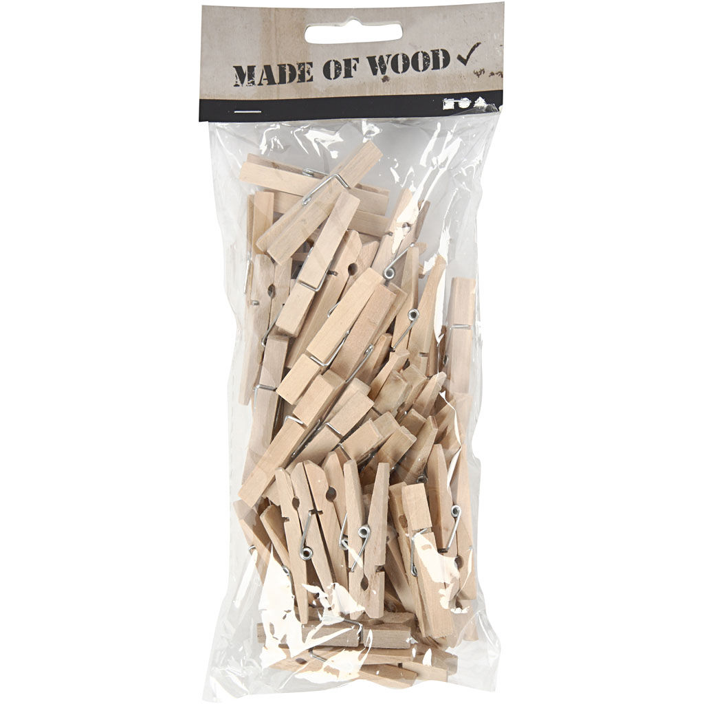 Kleine Wäscheklammern aus hellem Holz, die Sie verzieren und als Dekoration verwenden können. Wäscheklammern sind viel mehr als nur kleine Hilfsmittel, die wir zu Hause zum Aufhängen der Wäsche verwenden. Dort sind sie praktische, kleine Werkzeuge, aber im Hob...