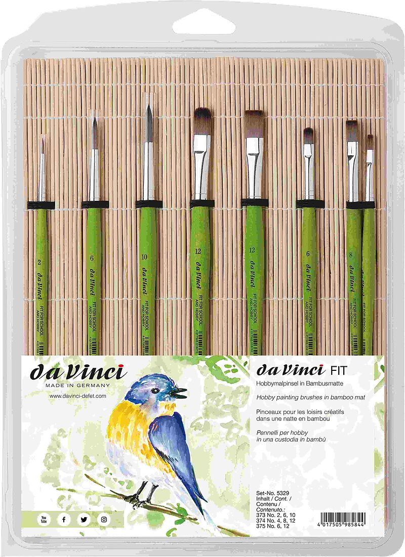 da Vinci Pinselset FIT SYNTHETICS Hobby- und Schulmalpinsel FIT in Matte, Serie 5329, 8er Set