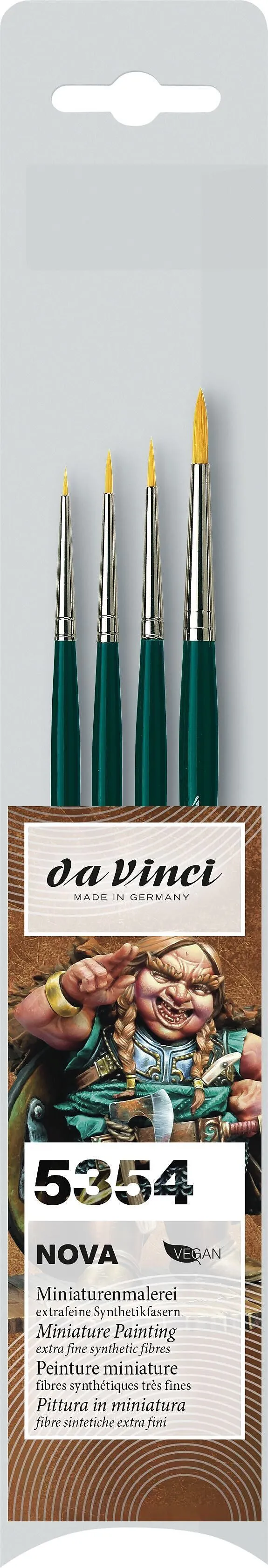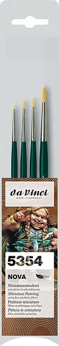 NOVA Miniaturen-Set, je 1 Stück: 1570 No. 3/0 + 0 + 1 + 4 Farbentyp: Acryl Malgrund: Metall, Kunstoff Anwendung: Miniaturmalen, Modellbau, Table-Top, Zinnfigurenmalerei Haare/Fasern: Synthetikfasern Zwinge: sog. Silberzwinge Stiel: Holz Stiellänge: kurz Subbra...