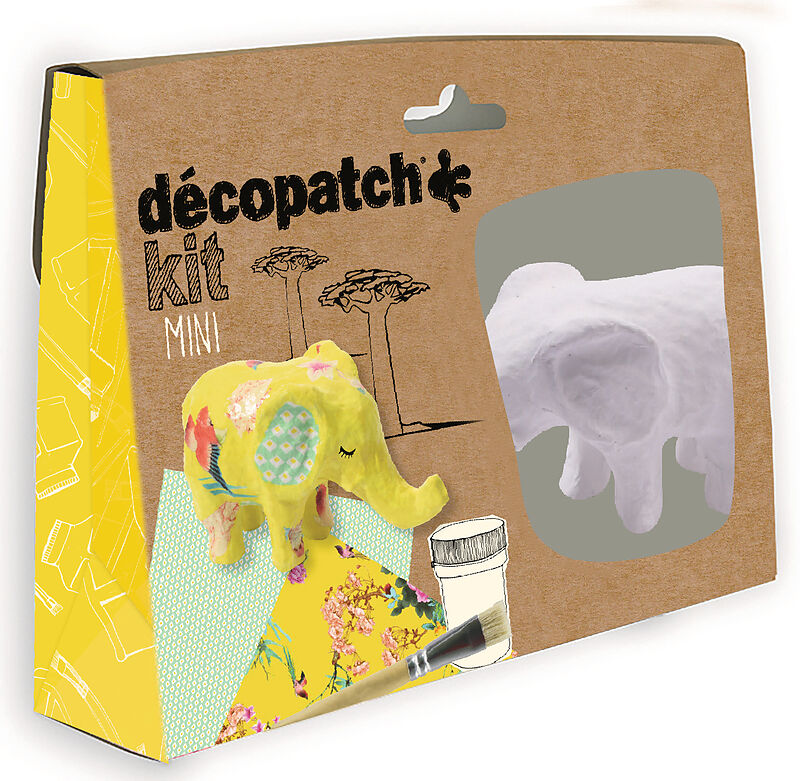 DECOPATCH Bastelset Elefant KIT029C Bogen, Tier, Pinsel, Lack