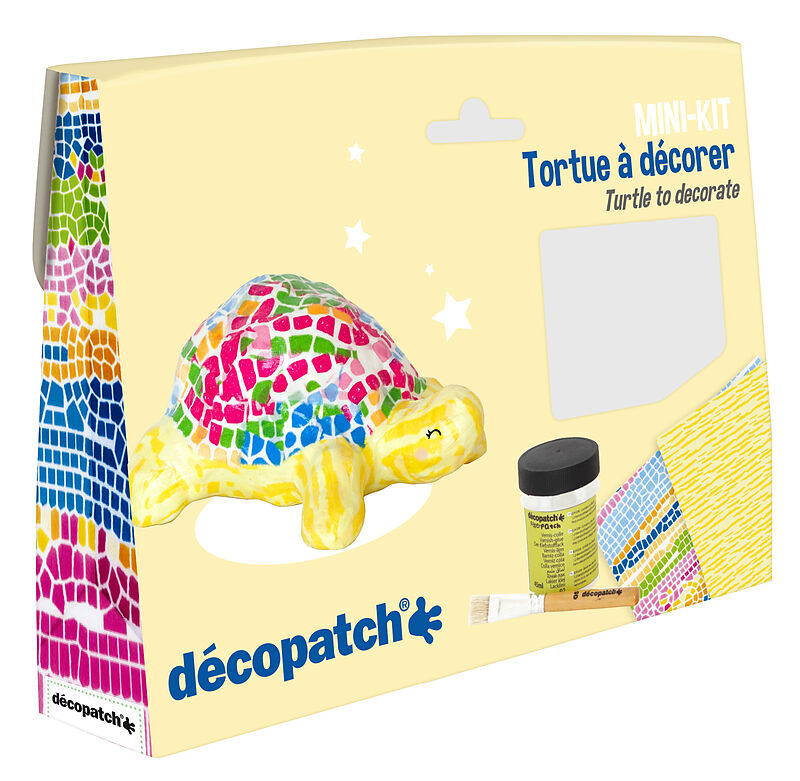 Bastelset Kleines Bastel-Set zum Kennenlernen der DECOPATCH-Technik. Es enthält ein Pappmaché-Tier zum Dekorieren, zwei sortierte DECOPATCH-Bögen, einen kleinen Pinsel und einen Décopatch-Klebelack. Ideal für kreative Aktivitäten mit Kindern ab 5 Jahren. Inha...