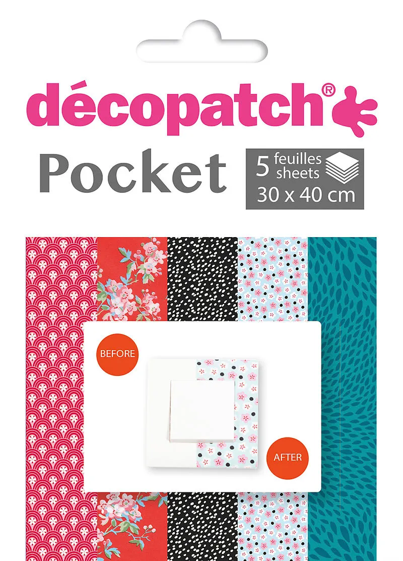 POCKET - Papier Decopatch-Bögen sind für viele Trägermaterialien geeignet: Karton, Styropor, Holz, Metall, Keramik und mehr. Einfach mit Decopatch-Klebelack (nicht im Lieferumfang enthalten) auftragen. Inhalt: 5 Bögen à 30 x 40 cm. Designs assortiert. Für fla...