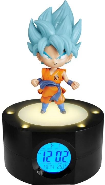 LED-Beleuchtung (2 Intensitäten) Digitaler Wecker Anzeige der Uhrzeit (12/24h) Anzeige des Datums (Tag/Monat/Jahr) Anzeige der Raumtemperatur (Celsius oder Fahrenheit) Programmierbarer Alarm (Licht + Buzzer) Verschiedene Töne Dimmer: 3 Intensitäten (10%-30%-1...
