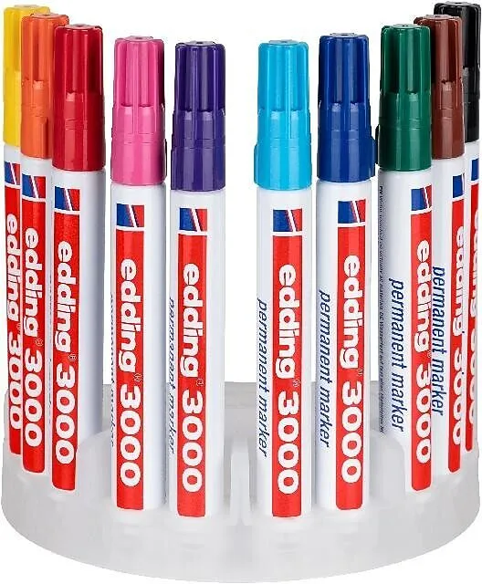 Permanentmarker edding 3000. Nachfüllbarer Marker zum Beschriften, Bemalen, Kennzeichnen von fast allen Materialien, auch Metall, Glas, Kunststoff. Permanente, geruchsarme Tusche ohne Zusatz von Toluol/Xylol, wisch- und wasserfest, lichtbeständig. Kann einige ...