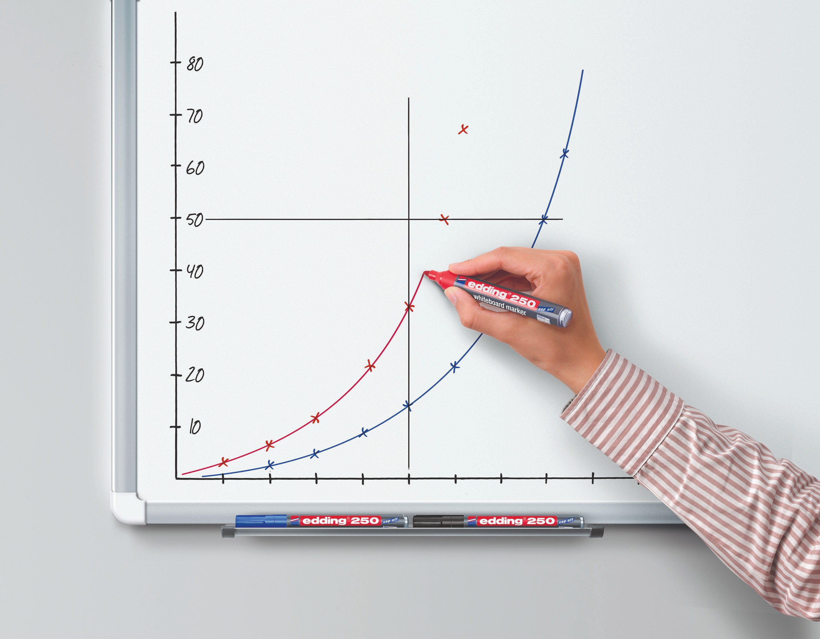 EDDING 250 - Whiteboard-Marker Zum Schreiben und Markieren auf Whiteboards. Trocken abwischbar von fast allen geschlossenen Oberflächen wie Emaille, Glas, Melamin. Cap-off-Tinte - daher vorübergehend offen lagerfähig ohne einzutrocknen. Cap-off Zeit: bis zu e...