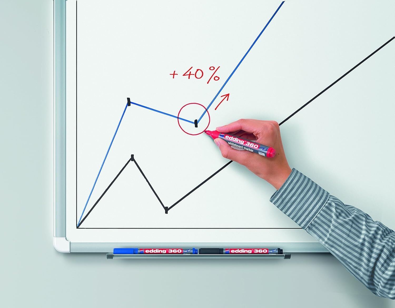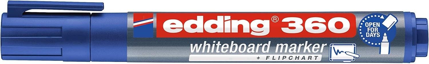 EDDING 360 - Whiteboard-Marker Zum Schreiben und Markieren auf Whiteboards. Trocken abwischbar von fast allen geschlossenen Oberflächen wie Emaille, Glas, Melamin. Cap-off-Tusche - daher vorübergehend offen lagerfähig ohne einzutrocknen. Cap-off Zeit: bis zu ...