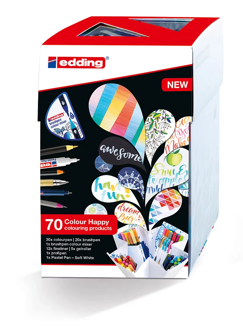 COLOUR HAPPY - Box Dekorativ ausgeschmückte Worte oder kleine Texte auf Grusskarten, Notizblöcken oder Wandbildern sind zur Zeit sehr angesagt. Das Trendthema heisst Handlettering. Bei dieser Kreativtechnik werden die Buchstaben kunstvoll gezeichnet und spiel...