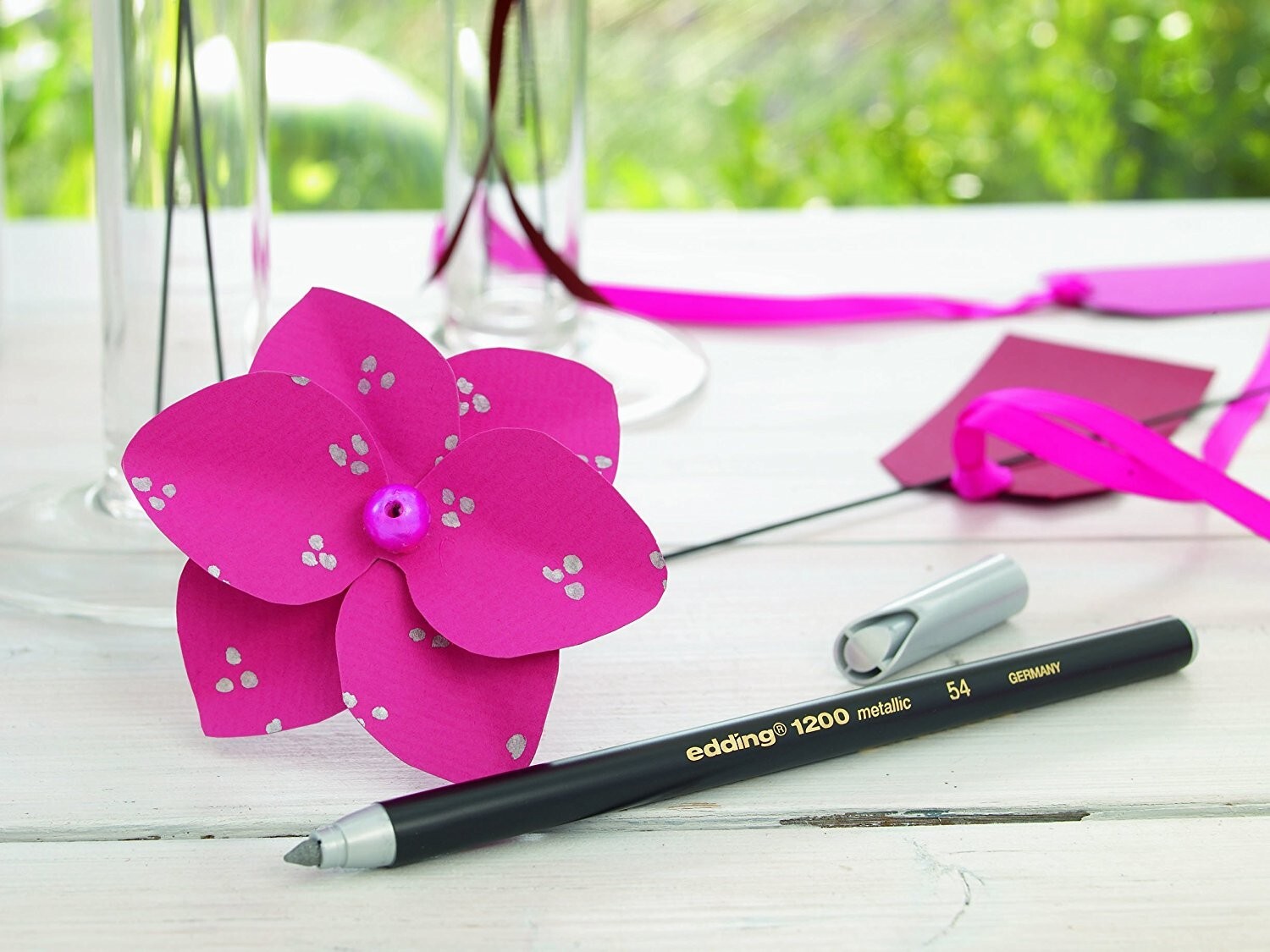Metallic-Faserschreiber Malen und Schreiben mit Metalleffekt, das können Sie mit dem EDDING 1200 metallic colourpen. Dieser Marker ist ideal, um auf dunklem Papier oder Pappe zu gestalten, sogar auf glatt beschichteten Papiersorten. Ob es persönliche Glückwün...