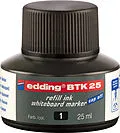 BTK-25 - Nachfülltinte Geruchsarme Tinte ohne Zusatz von Butylacetat zum Nachfüllen der Boardmarker edding 250, 360, 361, 363. Marker einfach mit der Spitze nach unten in die Refillflasche stellen, nach ca. einer Stunde ist er wieder schreibbereit. Flasche mi...