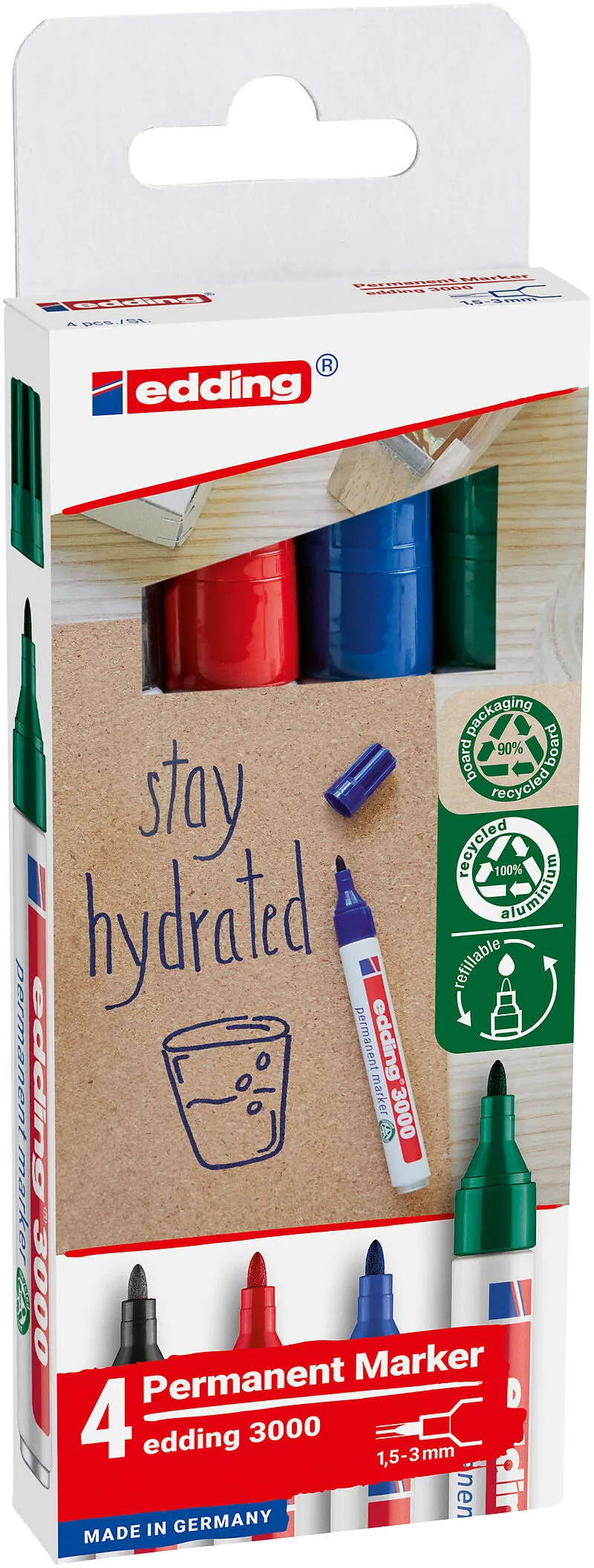 EDDING Permanent Marker 3000 1.5-3mm 3000-4-2 4 Farben assortiert