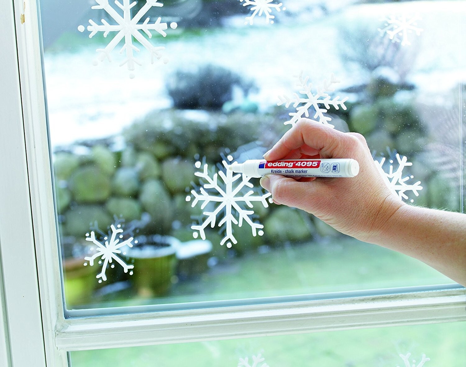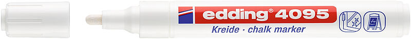 EDDING 4095 - Kreidemarker Zum deckenden Gestalten, Beschriften und Verzieren von Tafeln, Fenster, Glas und vielen anderen geschlossenen Oberflächen. Pumpsystem, vor Gebrauch schütteln, Kappe öffnen und pumpen. Geruchsneutrale, wassergelöste Flüssigkreide Feu...