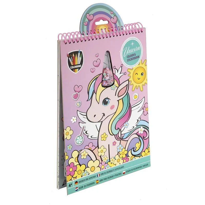 Einhorn Malbuch mit Aufkleber A4, 16 Seiten.