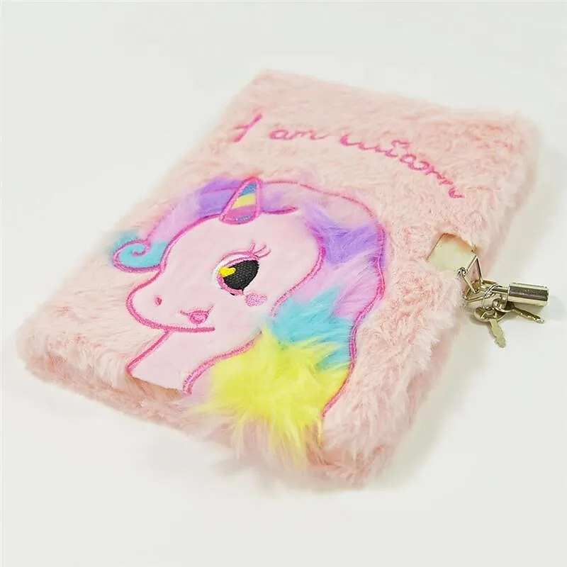 Einhorn - Tagebuch mit rosa Plüsch,mit Schloss zum Abschließen mit