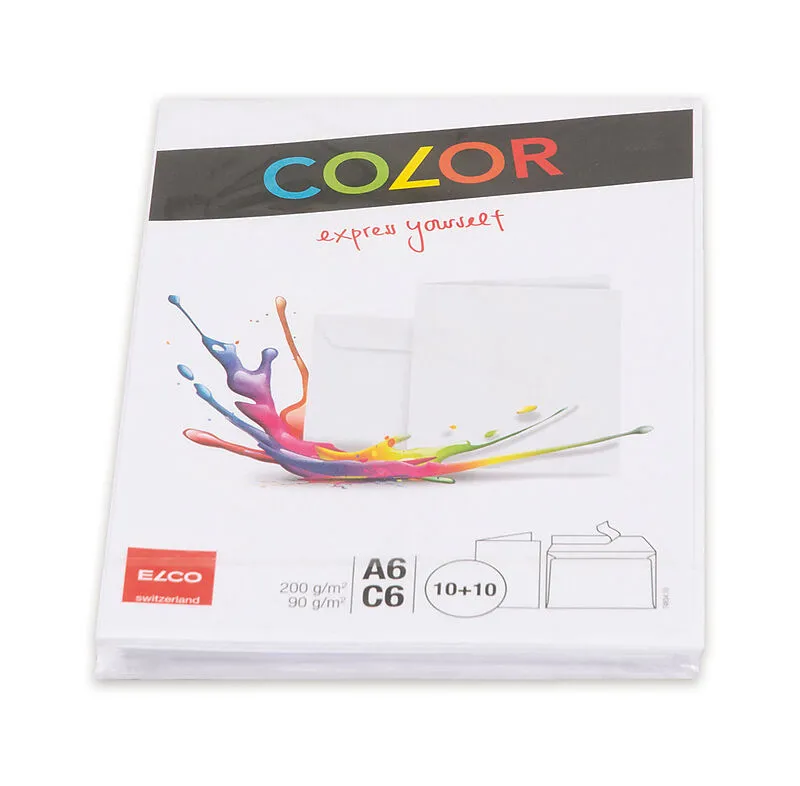 Color C6-Kuverts, weiss ohne Fenster mit Haftklebeverschluss im Bund 10/10 Stk. Praktisch mit passender A6-Faltkarte zum Beschreiben.