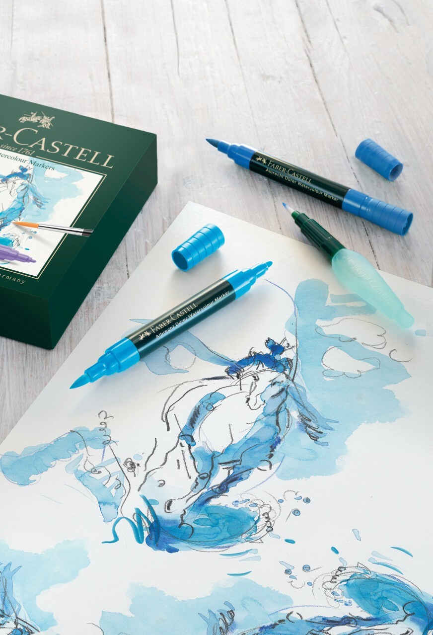 Ein Künstleraquarellmarker ist die moderne Definition der Aquarellmalerei: Ein absolut hochwertiges Zeichengerät, das sowohl spontanes Skizzieren als auch malerisches Aquarellieren unterstützt. Die Tinte auf Wasserbasis ist immer einsatzbereit und zudem hervor...
