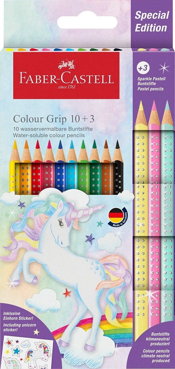 Für die älteren Kinder sind die Colour Grip Buntstifte mit ergonomischer Dreieckform und patentierter Soft-Grip-Zone geeignet. Diese sorgt für ermüdungsfreies und lockeres Malen. Durch die hohe Pigmentierung der Mine sind die Farben sehr leuchtend. Besonders s...