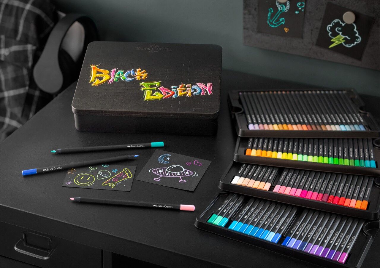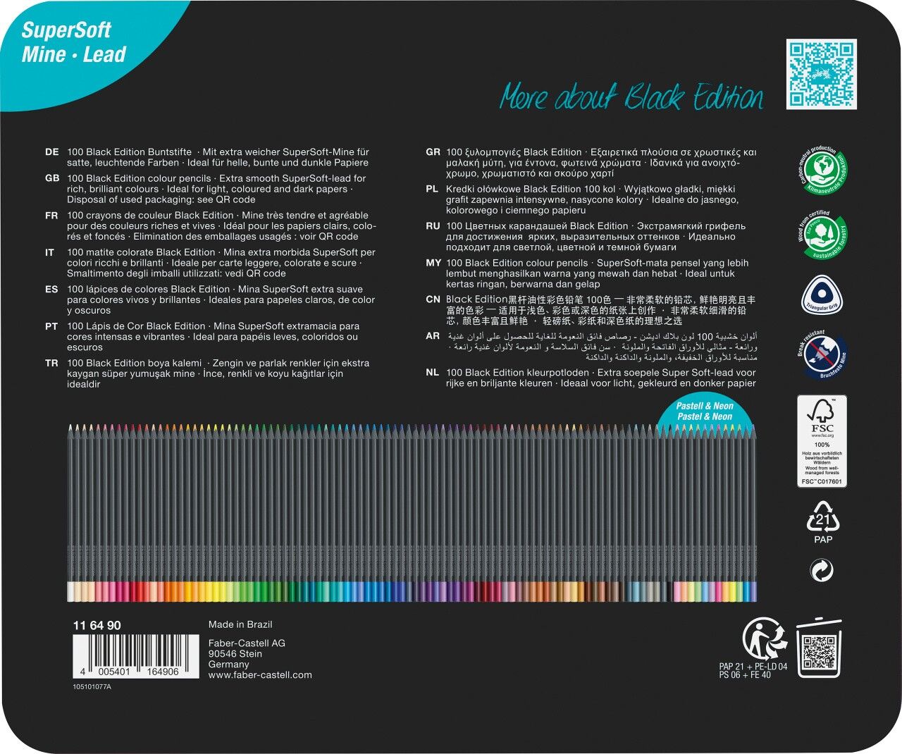 BLACK EDITION - Fasermaler Schwarzes Holz und Supersoft-Mine: Farbe pur!; Schwarzes Holz; Schwarzes Metalletui mit 100 Black Edition Buntstifte; Metalletui mit Black Edition Prägung; Supersoft-Mine für tolle Effekte auch auf dunklem oder farbigem Papier; Bunt...