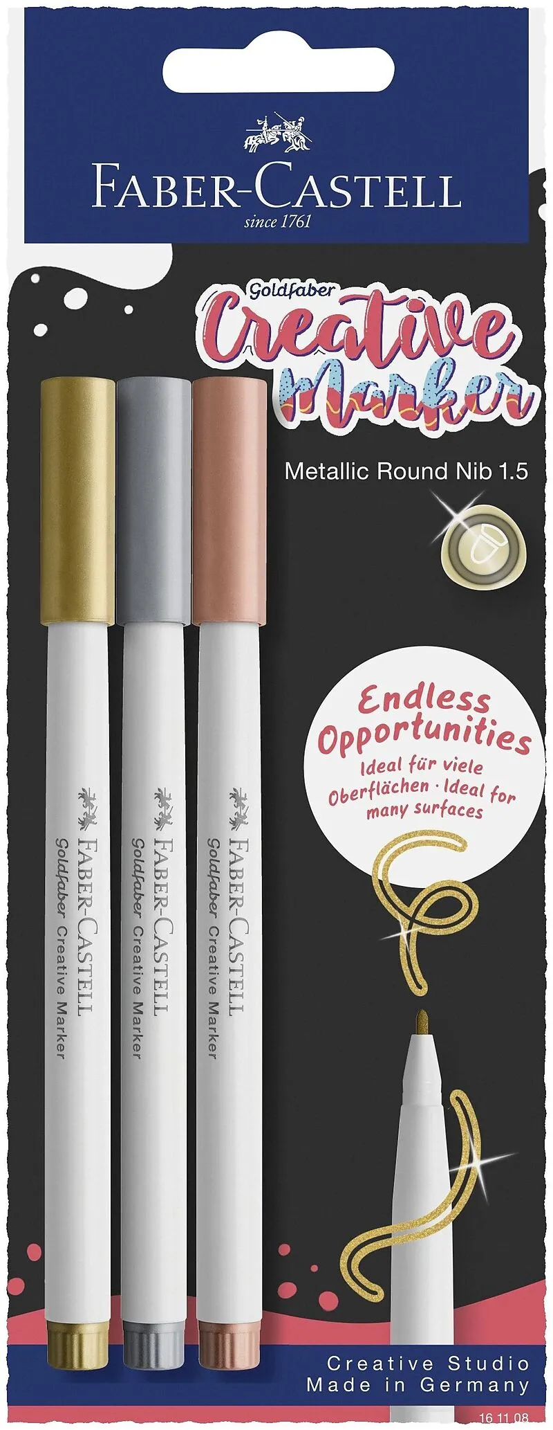 Creative Marker Goldfaber Creative Marker Metallic mit Rundspitze 1.5 mm; Allrounder für viele kreative Projekte (Lettering, DIY, Upcycling u.v.m.); Perfekt geeignet für alle Arten von Papier (helles, farbiges und dunkles Papier); Ideal für viele weitere Ober...