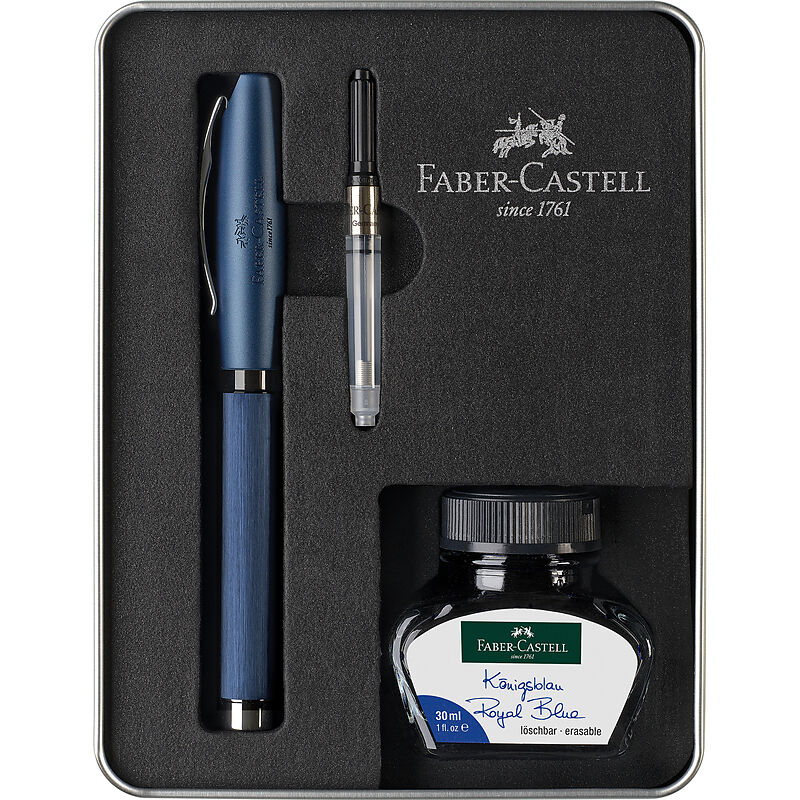 ESSENTIO - Geschenkset Geschenkset Essentio Aluminium Füller M, Blau, mit Konverter und Tintenglas blau, im hochwertigen Mettalletui. Essentio Aluminium Füller mit Schaft und ergonomischer Griffzone aus eloxiertem Aluminium, Blau; Gefederter Clip aus Metall, ...