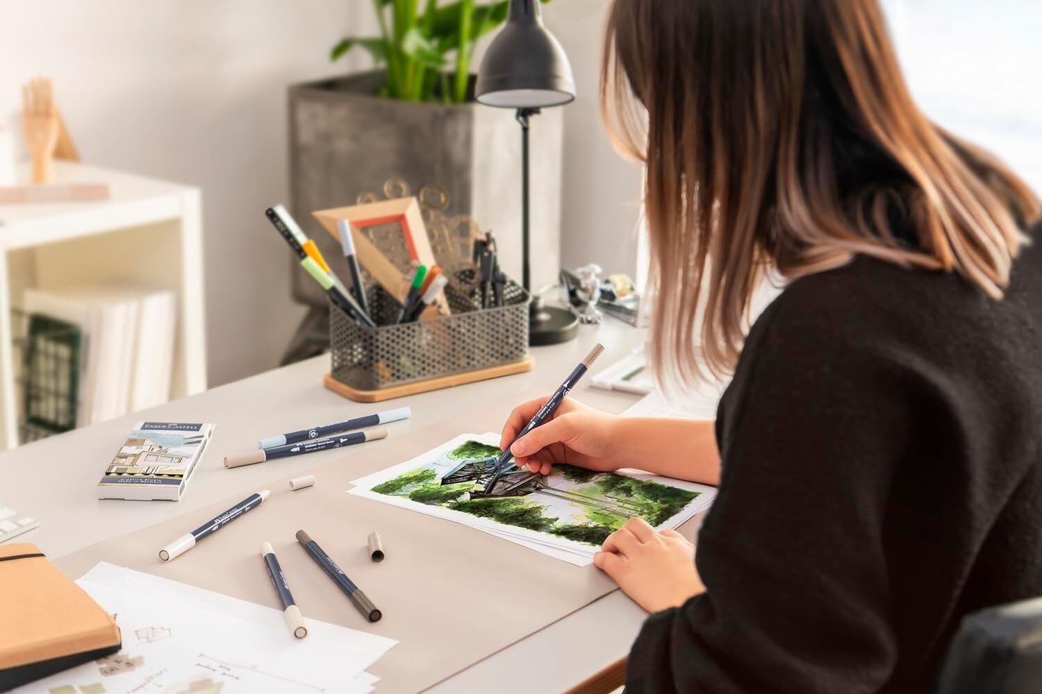 Entdecke den Layoutmarker von Faber-Castell - das perfekte Werkzeug für alle, die ihre kreativen Projekte auf das nächste Level bringen möchten! Mit seinen zwei verschiedenen Spitzen Pinsel- und metallgefasster Finelinerspitze und den leuchtenden Farben ist de...