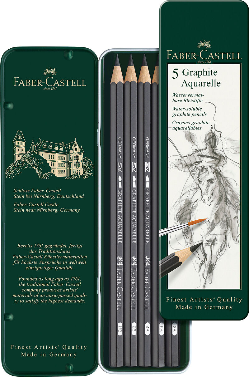 GRAPHITE AQUARELLE - Wasservermalbare Bleistifte Mit dem wasservermalbaren Bleistift GRAPHITE AQUARELLE lassen sich Vorskizzen von Aquarellzeichnungen anfertigen und komplette Aquarelltechniken in Graphit erstellen. Ideal geeignet für klassische Aquarellmaler...