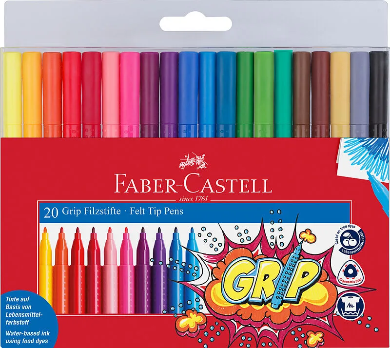 GRIP COLOURS Die GRIP Colour Marker besitzen die ergonomische Dreikantform und die Noppen-Oberfläche für sicheren Halt. Wichtig für die Kinder und Jugendlichen: die Fasermaler halten sehr lange und haben eine formstabile, robuste Spitze. Die Farben leuchten s...