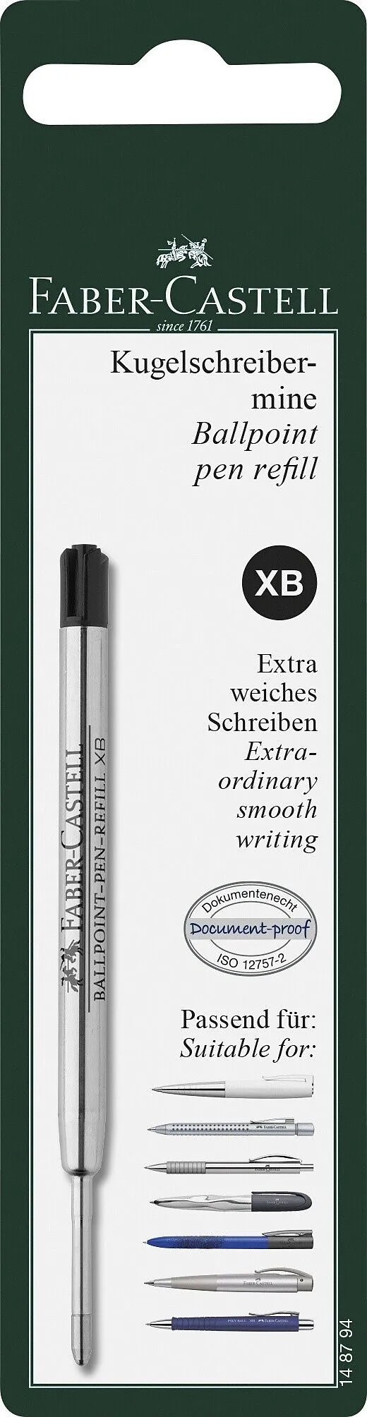 Für besonders leichtes und weiches Schreiben; Ersatzmine für Kugelschreiber; Standardgroßraummine mit Stahlspitze zum Durchschreiben geeignet; Dokumentenecht; Lichtbeständig; Schreibstärke: XB; Schreibfarbe: schwarz. Kugelschreibermine - Typbezeichnung der Min...