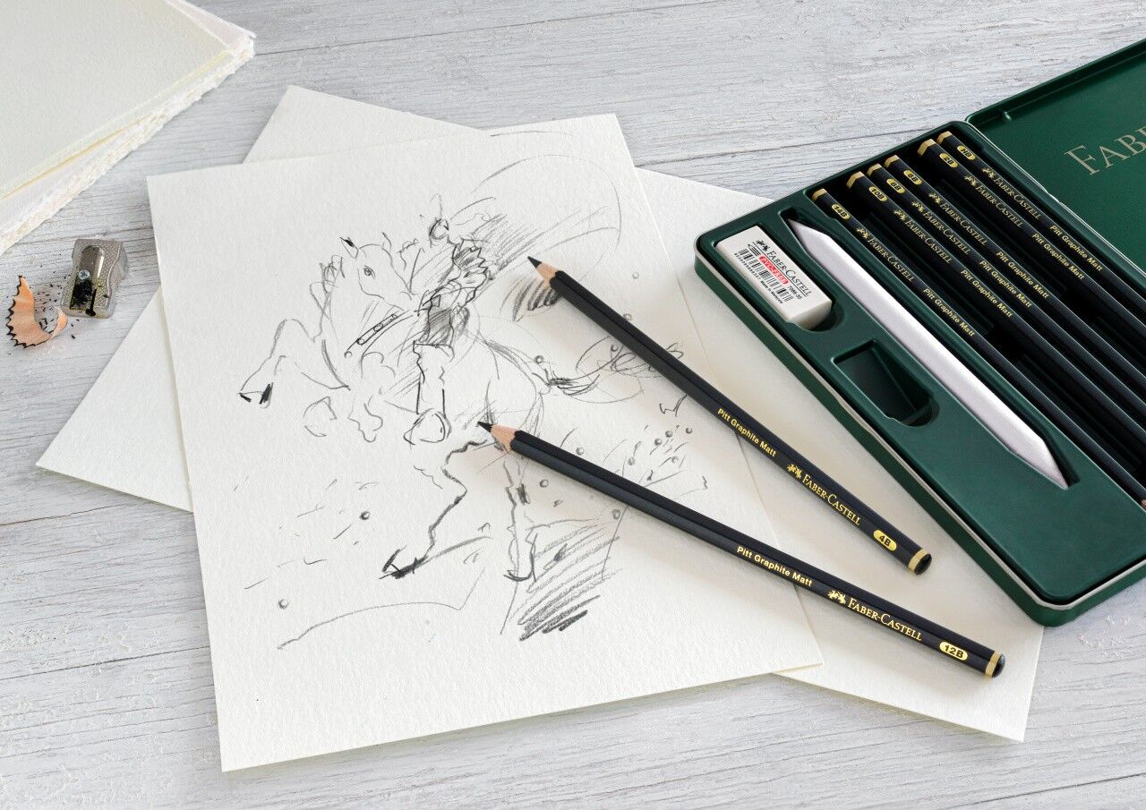 PITT GRAPHITE - Schreibset Weltneuheit; Extrem matter Bleistift von höchster Künstlerqualität; Besonders matter Grafitabstrich für reduzierte Reflexion auf Papier; Höchste Tonwertdichte für maximale Tiefenwirkung; Weicher Grafitabstrich; Ideal zum Schreiben, ...