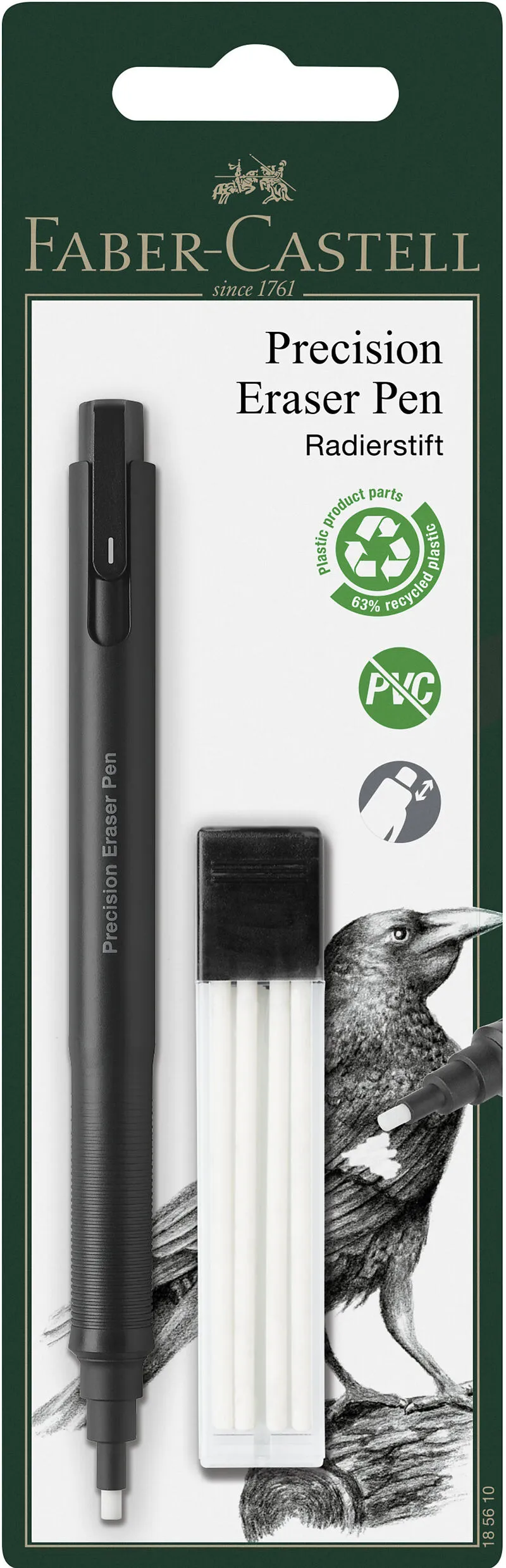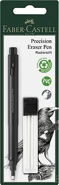 Radierstift PRECISION ERASER PEN mit Druckmechanik und metallgefasste Spitze, entfernt Blei- und Buntstiftlinien nahezu rückstandslos. Er radiert präzise und punktgenau. Inhalt: 1 Radierstift + Ersatzradierer