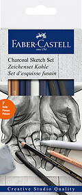 Zeichenset Kohle Das Einsteigerset zum Kohlezeichnen eignet sich ideal für Hobbykünstler. 7-teiliges Set Setinhalt: 2 Pitt Zeichenkohlesticks (6 - 11 mm), 1 Pitt Zeichenkohlestift medium, 1 Pitt Reisskohlestift soft, 1 Pitt Pastellstift weiss medium, 1 Knetra...