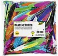 Bunte Mischung von Indianerfedern, 100g, verschiedene Farben sortiert weiß, zitronengelb, pink, rot, pazifik, ultramarin, orange, hellgrün, mittelgrün, schwarz, 10-20 cm Größen sortiert, verpackt im Beutel mit 1-farbigem Etikett Indianerfedern, 100g bunt gemis...