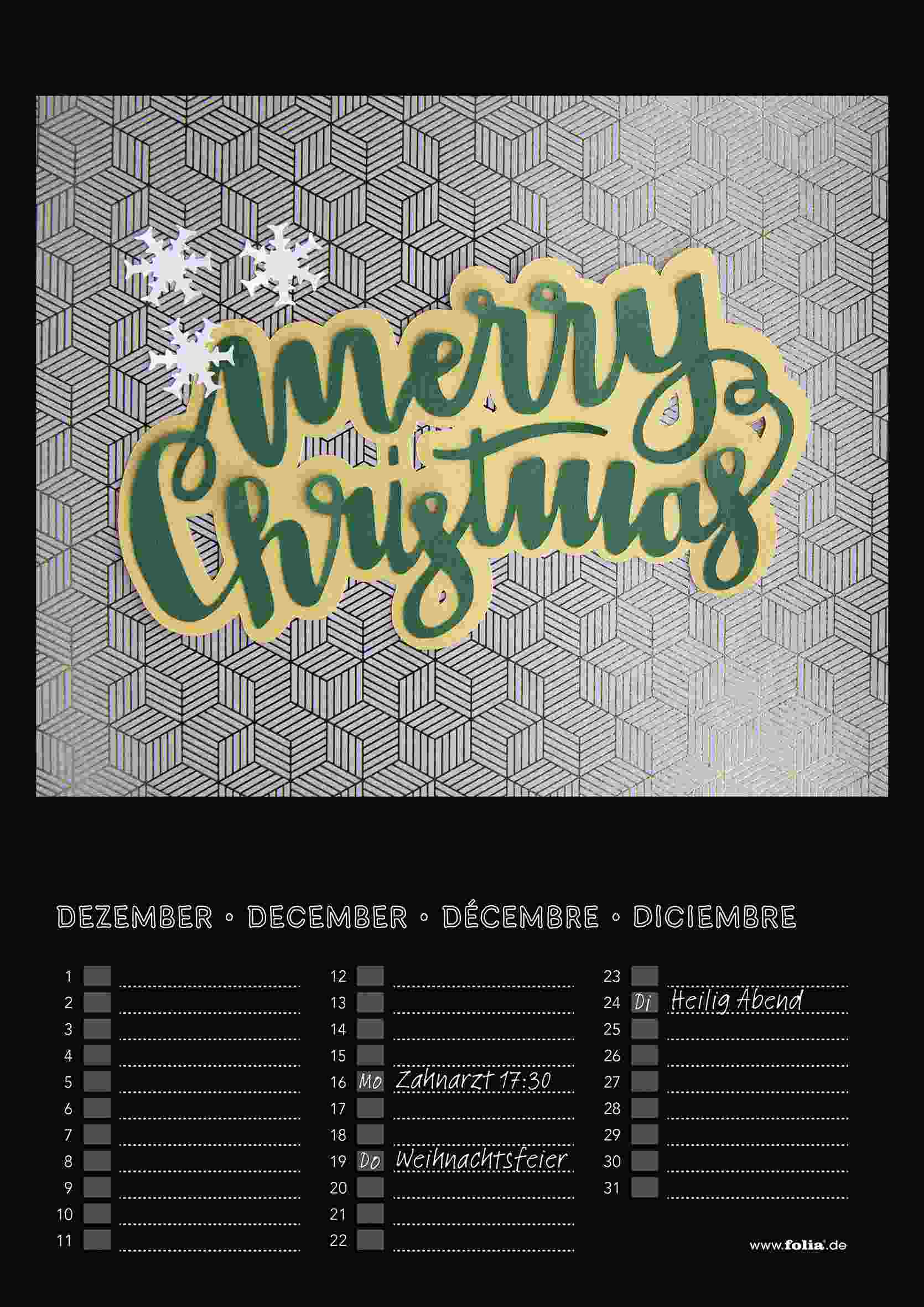 Folia Dauerkalender mit Spiralbindung 170g/m, DIN A4, Papier schwarz, Druck silber