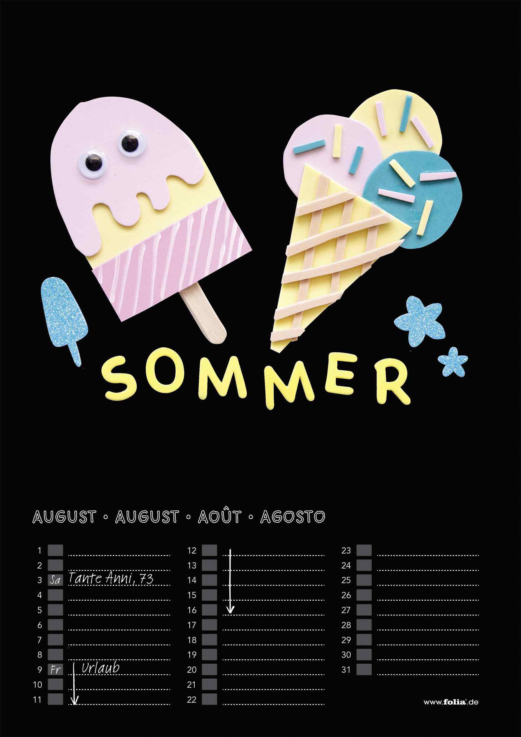 Immer fortlaufender Dauerkalender der jedes Jahr verwendet werden kann, Papier schwarz, zum Bemalen mit sämtlichen Stiften geeignet, zum Bekleben und Bebasteln