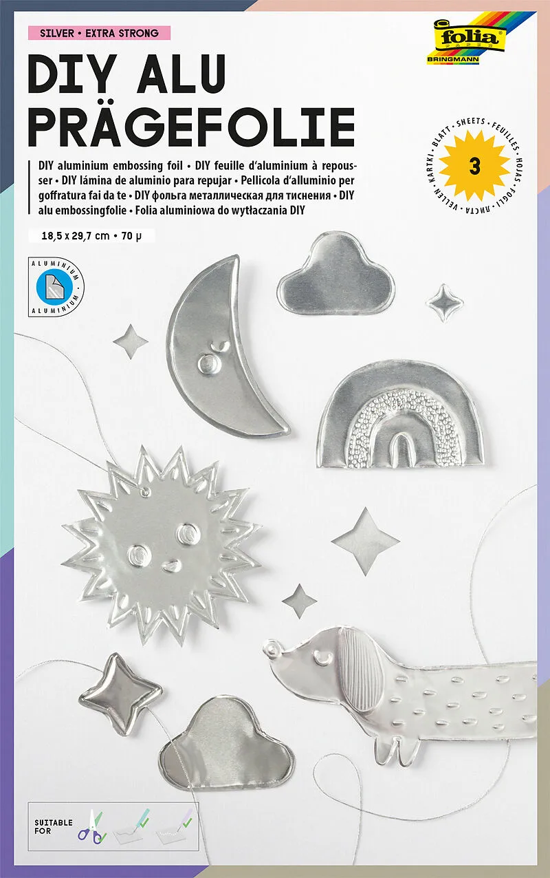 FOLIA DIY Alu Prägefolie 18x29.7cm 522 silber, extra strong 3 Blatt