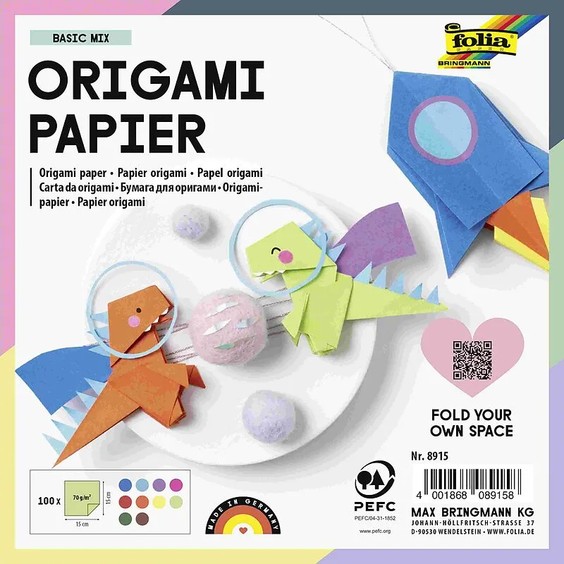 Faltblätter 70g/qm, 15x15cm, 100 Blatt in 10 verschiedenen Farben, durchgefärbt, durch das Falten entstehen aus den quadratischen Blättern 2- oder 3-dimensionale Origamitiere, Papiergirlanden, Fensterbilder, Sterne und andere Figuren. Faltarbeiten fördern die ...