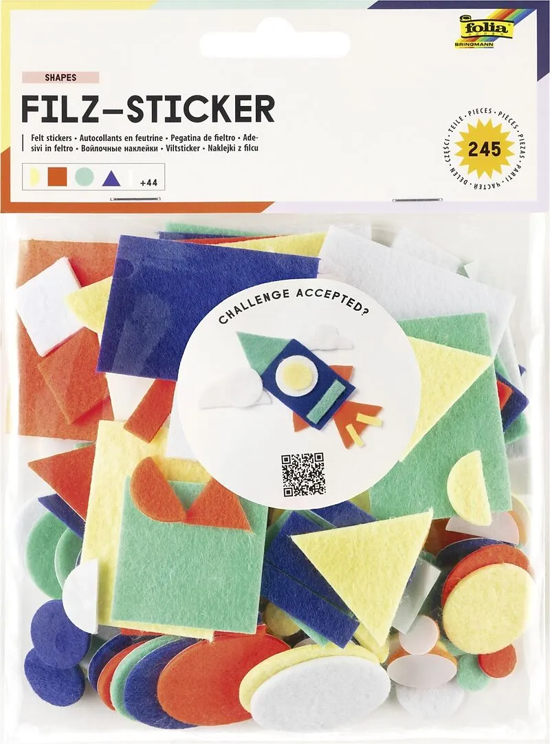 Filz-Sticker Set 245 abstrakte Formen in 5 Farben Dieses Filz-Sticker Set begeistert mit modernen, abstrakten Formen und kräftigen Farbkombinationen inklusive leuchtender Neon-Akzente. Ideal für kreative Bastelprojekte, bei denen Fantasie und Gestaltung im Mi...