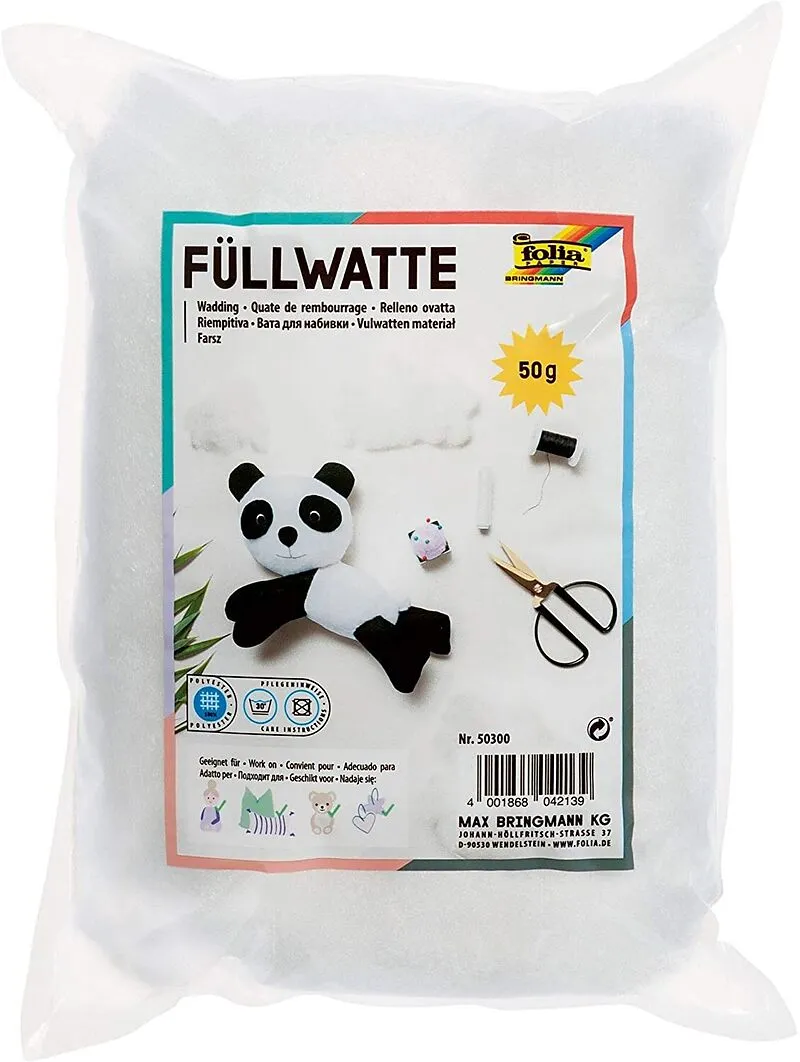 Füllwatte eignet sich hervorragend als Füllmaterial für Stofftiere, Puppen, Kissen, Applikationen usw.. Dies ist eine qualitativ hochwertige Polyesterfaser, die bei 30C waschbar und schwer entflammbar ist. In der Packung befinden sich 50 g dieser Watte in der ...