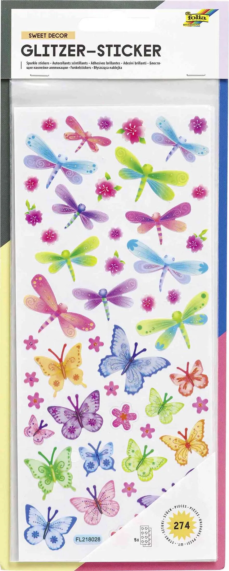 Hochwertige Sticker auf transparentem Trägermaterial, ca. 10x23cm, 5 Blatt mit verschiedenen Motiven im Bereich Dekozauber, in Folie auf 4-farbig bedruckter Reiterkarte, LGA tested Glitzer-Sticker Dekozauber. Hochwertige Sticker auf transparentem Trägermateria...